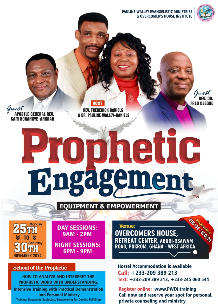 Join us at the School of the Prophetic (Nov 26-30) with Dr. Pauline Walley-Daniels (USA), Rev. Fred Deegbe (Ghana) & Apostle General Sam Korankye-Ankrah (Ghana).